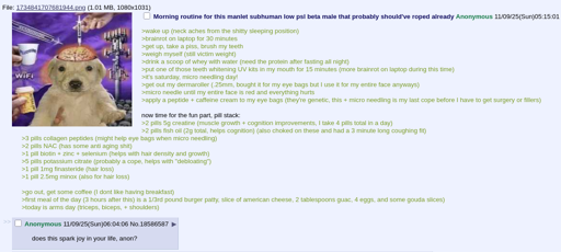minus-squarekungen@feddit.nulinkfedilinkarrow-up6·2 days agoSelenium toxicity can give symptoms like hair loss and fatigue. But he’s taking finasterid and minoxidil, as well as a large dose of caffeine, so the problem is solved!