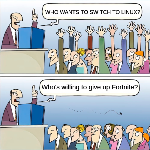 So basically a game developer can flip a switch to allow anything to run on Linux, but they can also unflip that switch and brick Linux installs from playing online.