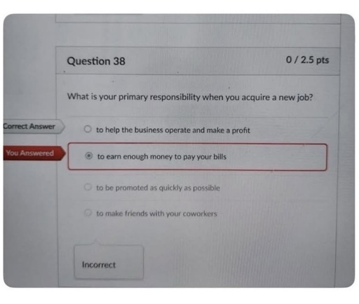 The key word here is responsibility. It didnt ask for your purpose or goal in having a job, but what is your responsibility to your employer when you have a job.