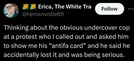 Can we start a rumor that Antifa is exchanging secrets using QR codes or NFC or something? Honestly, I kinda just feel like that’s the kinda of nonsense the MAGA prats would guzzle down.