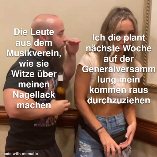 Nächste Woche ziehe ich dann vor so 20-30 Personen dann mein kommen raus durch und das wird gleichzeitig das witzigsten und das gruseligste meines Lebens. Witzig weil den allen so dermaßen die Kinnlade runterklappen wird, weil da niemand mit gerechnet hat und gruselig weil ich absolut keine Ahnung habe, wie positiv die Reaktionen ausfallen werden. Mein Plan besteht darin, dass ich mir im Laufe der Versammlung 3-4 Bier reinschrote (das wird räudig, sonst trinke ich so maximal 1-2 in der Zeit) und das dann unter TOP “sonstiges”, welcher am Schluss behandelt wird, denen das dann erzähle. Das Bier ist deshalb Teil des Plans, weil ich mir dafür glaube wirklich den Mut antrinken muss damit ich das durchziehe.