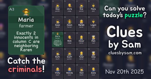 I solved the daily Clues by Sam, Nov 18th 2025 (Medium), in less than 7 minutes
