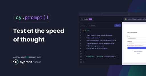 You've seen the previews. You’ve heard the buzz. And now it’s official: cy.prompt() is live and available to everyone as an experimental feature. Announced live on stage at CypressConf 2025 by founder Brian Mann, cy.prompt()’s entrance into the Cypress API marks a first step into the future of AI-assisted testing.