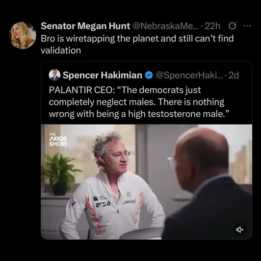 corgiwithalaptop [any, love/loves]@hexbear.netM to Chapotraphouse@hexbear.netEnglish · 4 days agoThe Planatir CEO is wearing a very silly shirthexbear.netimagemessage-square31fedilinkarrow-up1129file-text