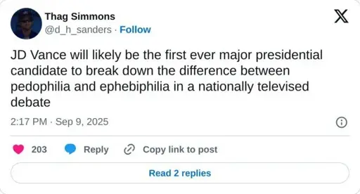 Also: There are huge differences between Pedophilia and Hebephilia, especially in consideration of the age of the mentally sick. Pedophile sex is never consentful or legal. Hebephile sex can be, heavily depending on the mental age/ripeness of the younger person though.