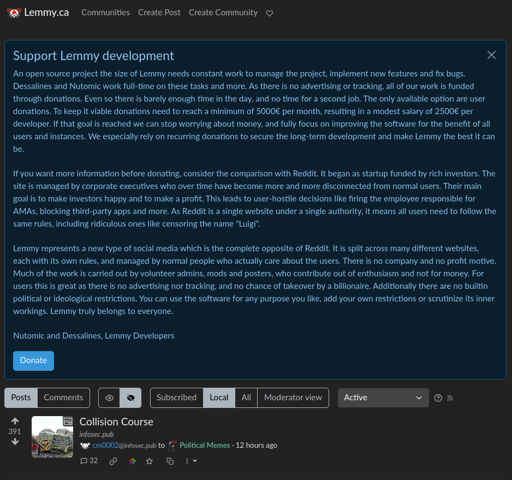 I can’t remember the last time Lemmy added a new feature that actually benefits admins or users. The Piefed devs are constantly coming out with new features, maybe it’s because they don’t waste the whole day banning people for left wing political views like saying genocide is bad.