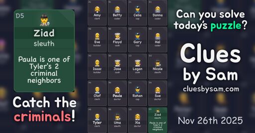 I solved the daily Clues by Sam, Nov 24th 2025 (Easy), in 05:03