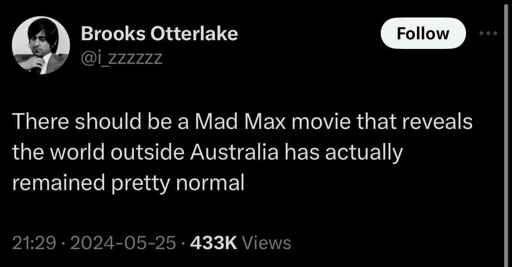 arrow-up11.01KimageNew Mad Max movie conceptsuppo.ficm0002@suppo.fi to Funny@sh.itjust.works · 18 days agomessage-square58fedilink