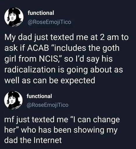 compostgoblin@piefed.blahaj.zone to 196@lemmy.blahaj.zoneEnglish · 21 hours agoWho do the ACAB rules apply to?piefed.cdn.blahaj.zoneimagemessage-square92fedilinkarrow-up1821