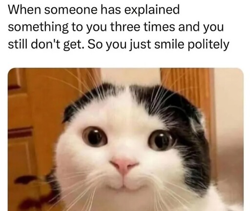 minus-squareIninewcrow@piefed.calinkfedilinkEnglisharrow-up6·2 days agoI have a niece who does this I’ll look at her saying … do you understand? Her … yup Me … you got all that? Her … yup Me two hours later: … you didn’t understand anything did you? Her … yup