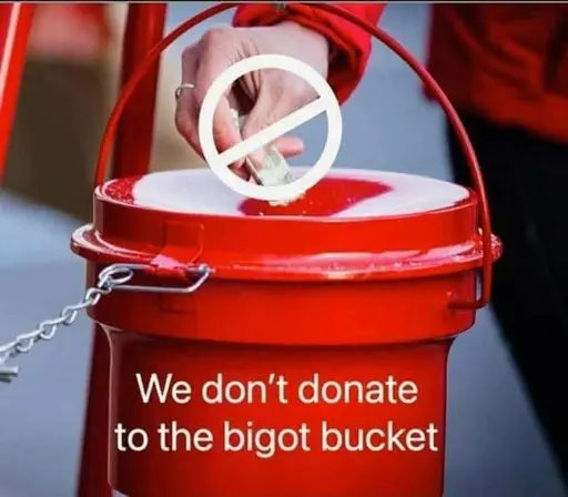 I know a destitute man in his 70s who rings bells for them who makes minimum wage for standing out in the cold collecting donations. I’m sure he would have no problem with the money supporting a bigoted organization. So at least some of the bellringers are compensated for their labor.