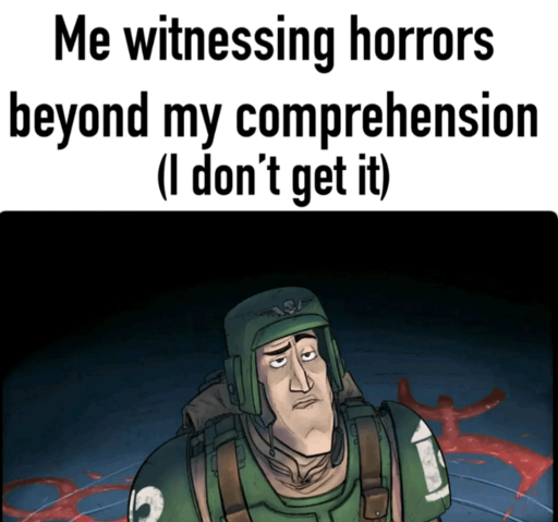 Now go kill those incomprehensible horrors for the Emprah, Guardsman
