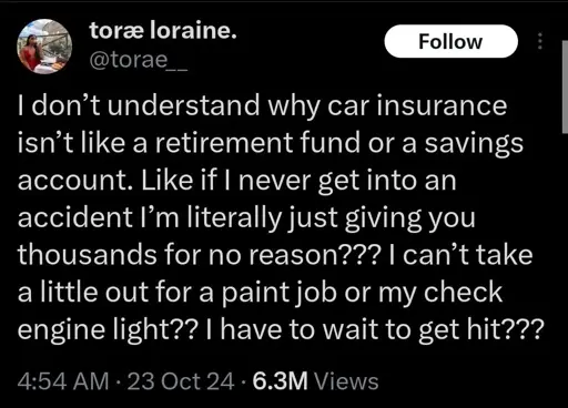 Well because if you crash right after making the insurance there won’t be enough in your “savings”.
