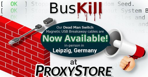 The BusKill project has partnered with ProxyStore to make BusKill laptop kill cords finally available from a brick-and-mortar location. You can now go to the following location and purchase a BusKill cable with cash or cryptocurrency.