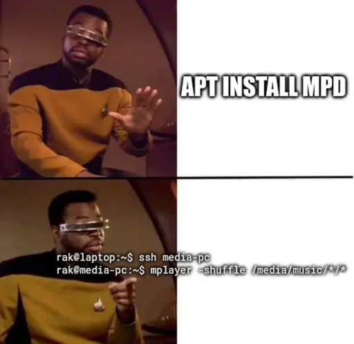 For the longest time (relatively speaking), I would do full stack Javascript (like the meme). But I have to frequently tie into AD/LDAP and the only decent NodeJS library for LDAP is no longer maintained because the community was shitty to the dev. Now I’ve had to venture out into Go (I can’t stand working in Python).